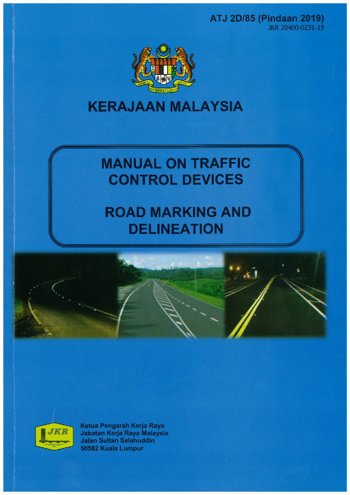 ARAHAN TEKNIK (JALAN) 2D/85 (Pindaan 2019)JKR 20400-0231-19 : MANUAL ON TRAFFIC CONTROL DEVICES ROAD MARKING AND DELINEATION / Prepared by Committee of JKR
