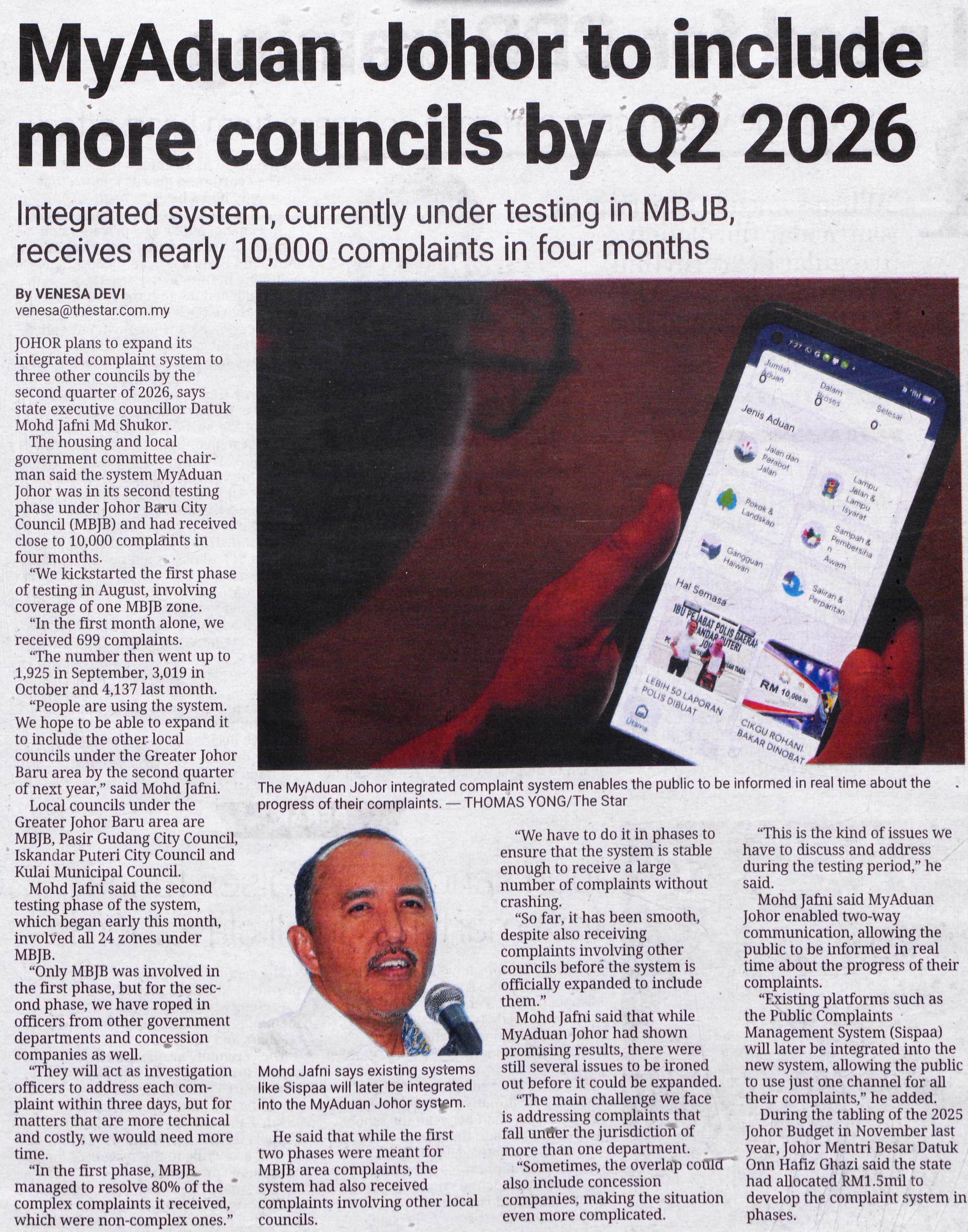 MyAduan Johor to include more councils by Q2 2026
