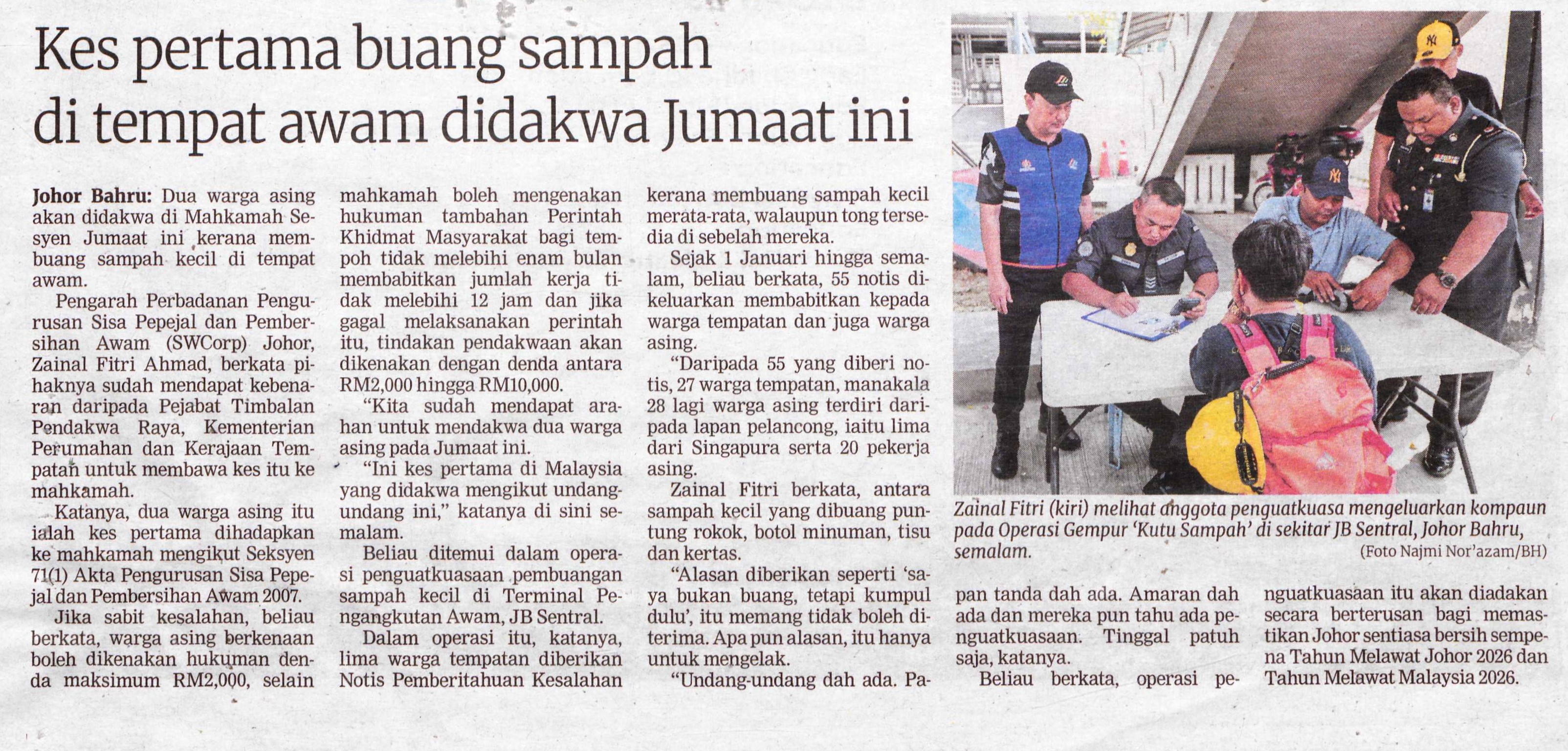 Kes pertama buang sampah di tempat awam didakwa Jumaat ini.