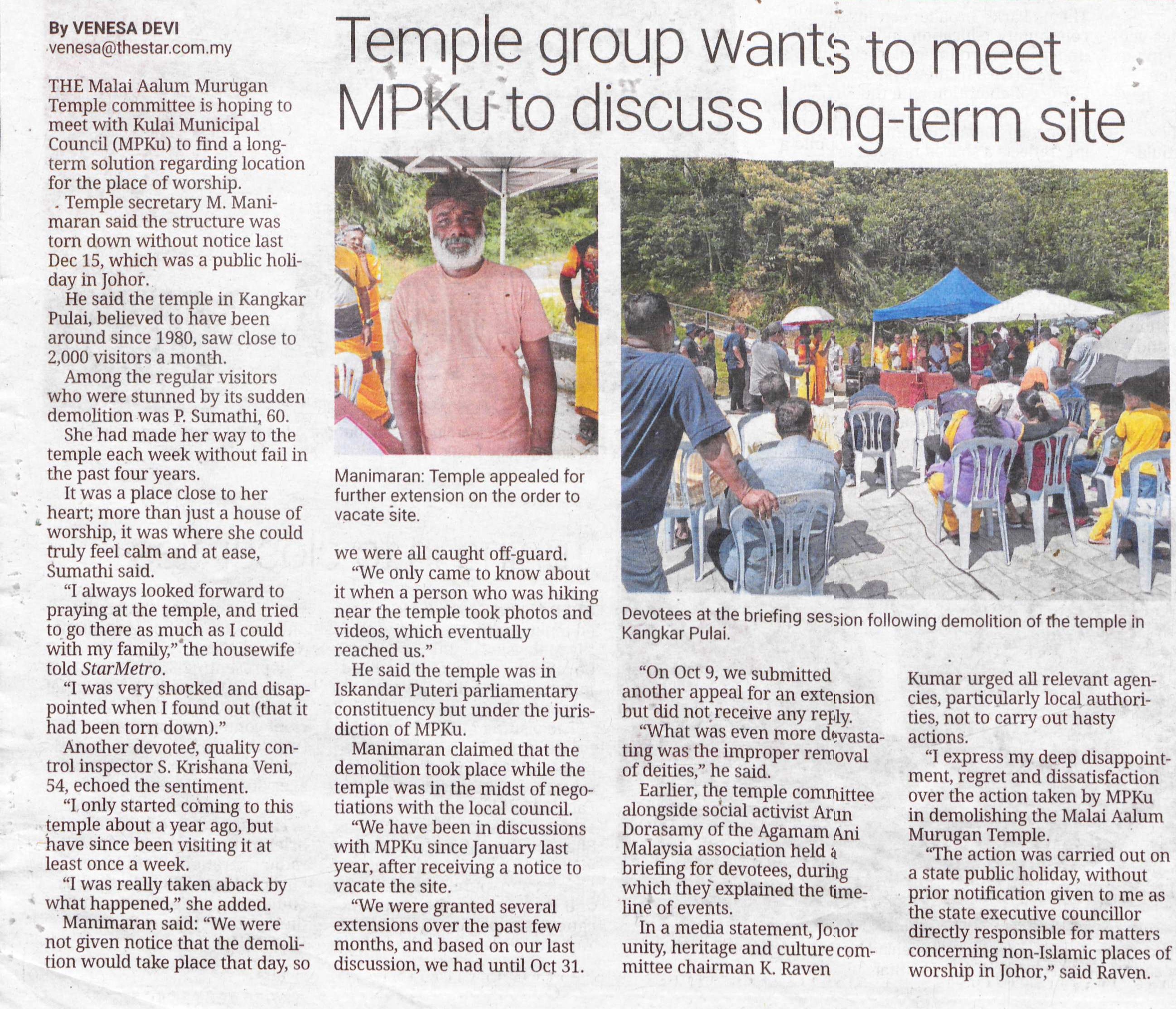 Temple group wants to meet MPKu to discuss long-term site