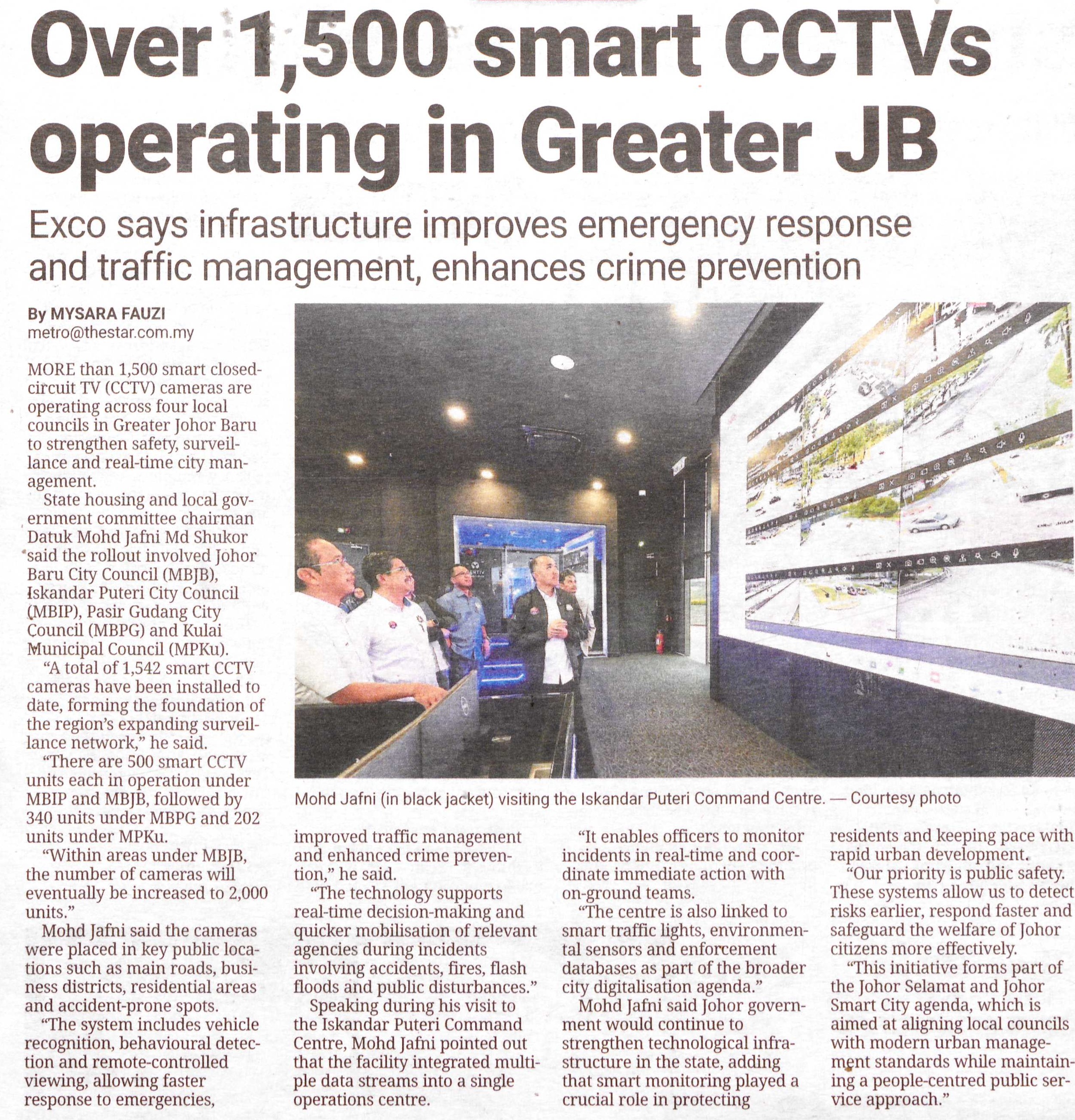 Over 1,500 smart CCTVs operating in Greater JB
